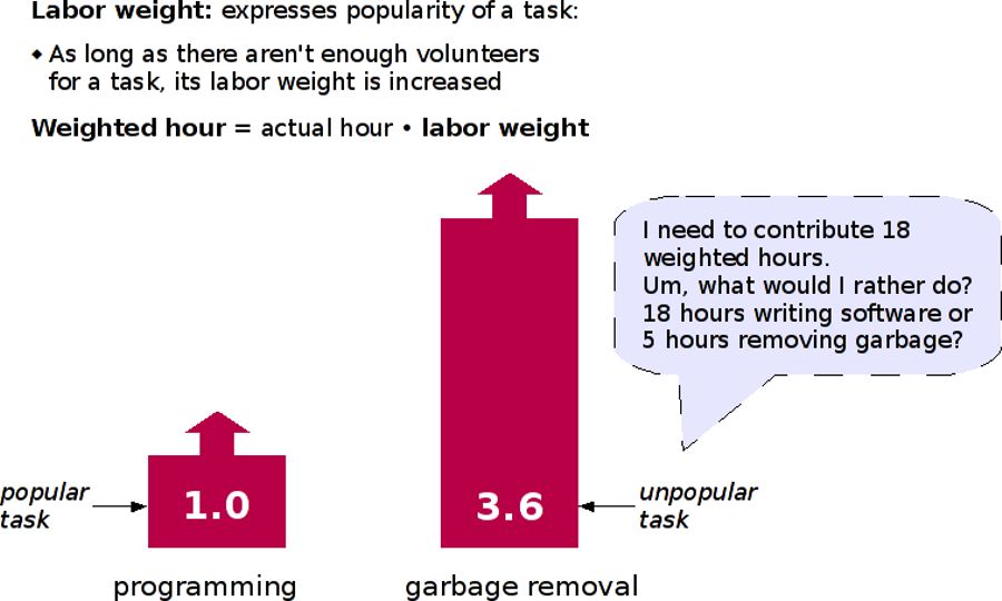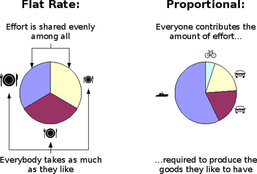 - Effort is shared among those who can contribute - if you're unable (unwilling?) to contribute, you don't have to (everybody else will have to contribute slightly more).
