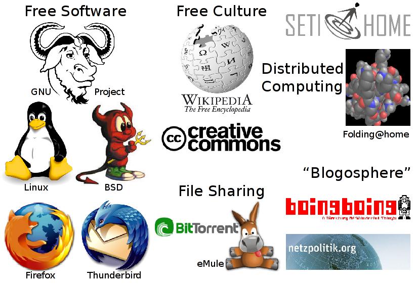 - Computers and Internet access have already been sufficiently "common" and affordable (in the Western world, at least), to make free software, Wikipedia, Wireless community networks, and file sharing a reality.